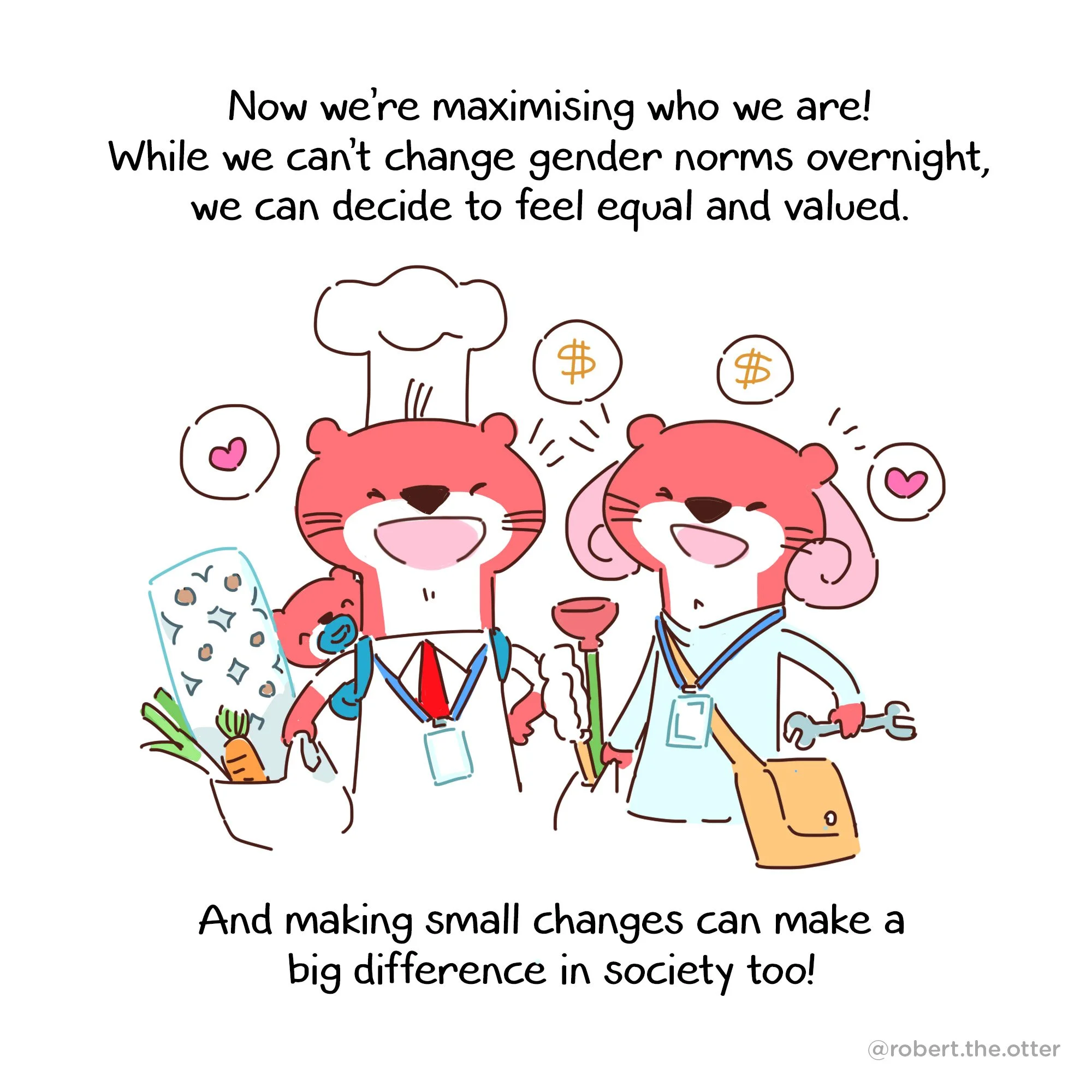 Now we're maximising who we are. While we can't change gender norms overnight, we can decide to feel equal and valued. And making small changes can make a big difference in society too.
