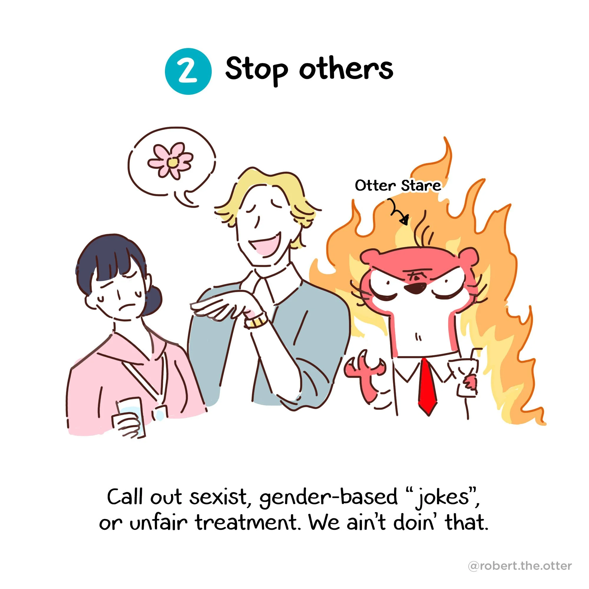 2. Stop others. Call out sexist, gender-based "jokes," or unfair treatment. We ain't doin' that.